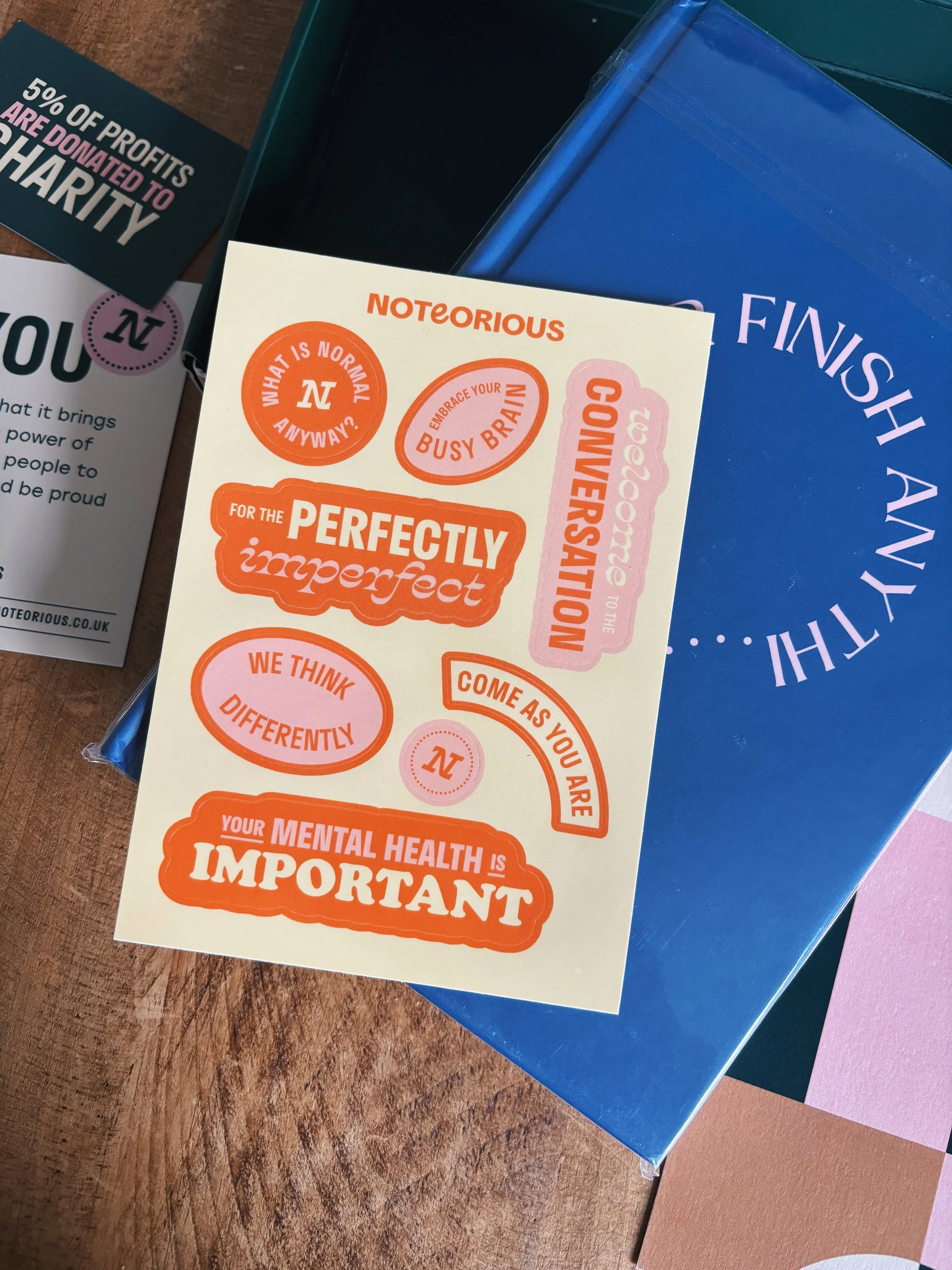 ‘Pioneers in rewriting the narrative surrounding Neurodiversity and Mental Health Conditions. Through the power of bold stationery, our mission is to inspire people to embrace their unique perspective and be proud of who they are.’ Noteorious branding is bold, inclusive and exciting. It was important to create something that is flexible and can grow with the business, allowing for new patterns and colours to be added that always compliment the designs of the stationary.